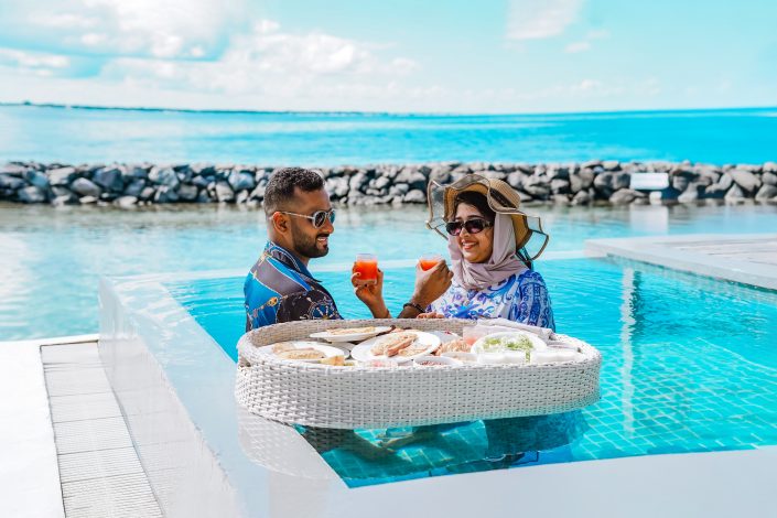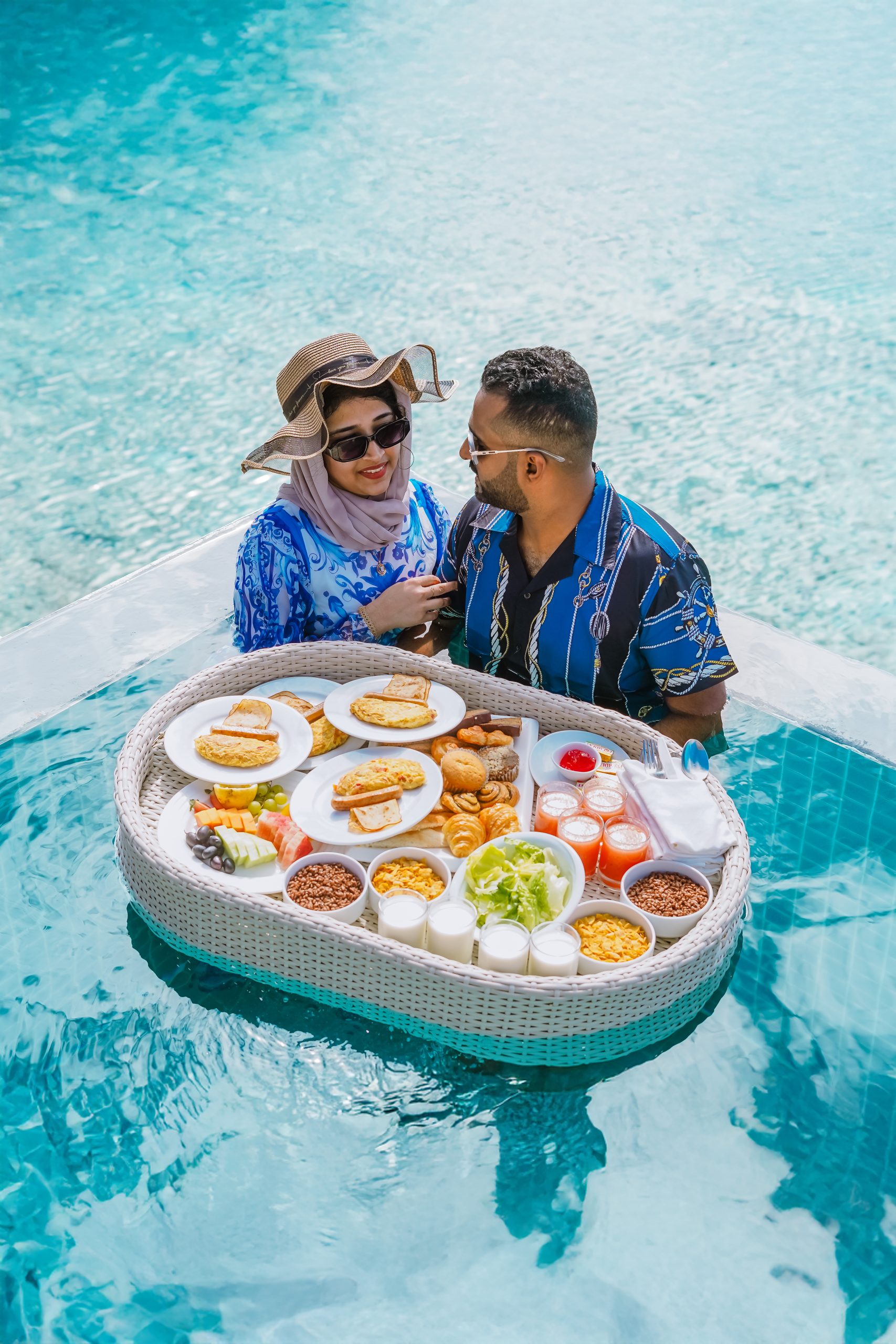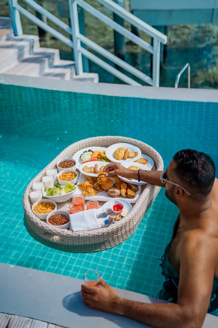 Capturing the elegance of floating breakfasts in the serene pools of the Maldives—where indulgence meets breathtaking beauty.